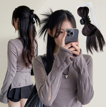 꿀팁 ! : 로우번을 만들기 어려운 기장의 헤어이거나, 머리를 만지는게 어려운 친구들은 집게 가발 삔을 이용하면 쉽고 간단하게 꾸안꾸를 만들 수 있어! (나도 집게삔 쓰는데 엄청 편하고 예쁘더라)