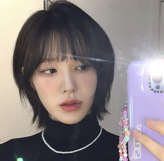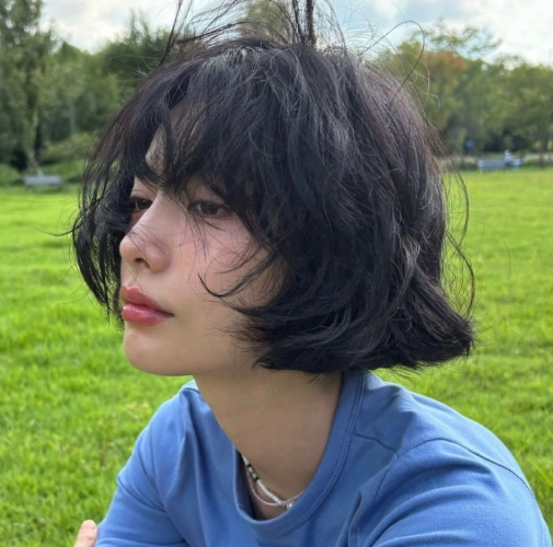 - 단발 또는 숏단발 길이 허쉬컷 + 다크브라운 염색 : 부드러우면서 여성스러움 극대화